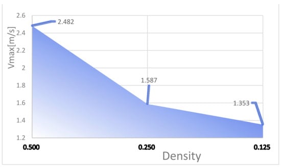 Figure 11. Maximum velocity in flow channels at different mesh densities.