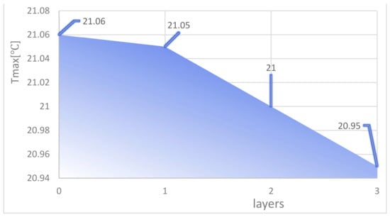 Figure 16. Maximum chip temperature for different layers of fishnet runners.