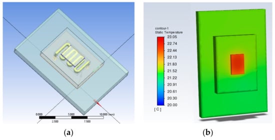27. Li, X.; Yuan, Y.; Li, Y.; Liu, J.; Li, S.; Liu, Y.; Cheng, Y. Finite Element Simulation Analysis of Temperature Field of MEMS Gas Sensor Based on ANSYS Software. In Proceedings of the 2021 3rd International Conference on Artificial Intelligence and Advanced Manufacture (AIAM), Manchester, UK, 23–25 October 2021; IEEE: Piscataway, NJ, USA, 2021; pp. 468–471. [Google Scholar] [CrossRef]