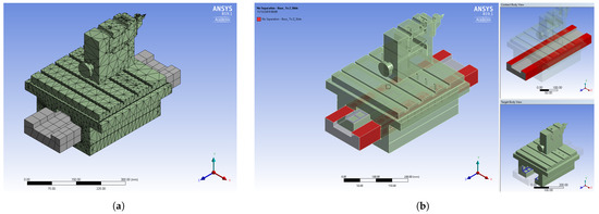 20]. Comparing MMC materials with monolithic metals reveals several advantages of MMCs. These materials offer higher strength-to-density and stiffness-to-density ratios, improved fatigue resistance, superior elevated temperature properties, lower creep rate, lower coefficients of thermal expansion, and better wear resistance. To contribute to this research work, a numerical analysis is required to study the dynamic behavior of linear slideways when they are constructed with MMC materials. The subsequent section will elaborate on the employed numerical analysis method, which aims to assess the feasibility of sustainable design and development for ultraprecision machining systems. Despite the potential challenges associated with thermal expansion and distribution in MMC aluminium with SiC, there are significant advantages that outweigh these concerns. The inclusion of MMC aluminium in the hydrostatic bearing design brings forth its excellent thermal conductivity, which can play a pivotal role in cooling the entire structure during STS machining operations. As the hydraulic system generates heat, the MMC aluminium swiftly transfers the heat, thereby facilitating efficient cooling. This thermal conductivity attribute contributes to the overall enhancement of linear motion during machining processes. By effectively dissipating heat, the MMC aluminium aids in maintaining optimal temperatures within the system, ensuring the stability and precision of the machining operation. This highlights the potential of MMC aluminium as a valuable material choice in ultraprecision machining applications, as it offers a synergistic combination of thermal management capabilities and improved performance in motion control. While this study has primarily focused on the dynamic analysis and performance evaluation of metal matrix composites (MMCs) for hydrostatic bearings, it is important to acknowledge the significance of fatigue analysis. In future research, it is planned to investigate the fatigue properties of MMC-based hydrostatic bearings, as cyclic loading during operational cycles could potentially lead to fatigue-induced failures. This research direction aims to ensure the longevity and reliability of bearing components under real-world conditions, contributing to the overall advancement of hydrostatic bearing technology and the reliability of micro-nano machining systems. With regard to MMC strength of material, recent research on SiC particle-reinforced aluminum–matrix composites (AL-MMC) has delved into understanding the material’s mechanical properties, notably its stress-strain characteristics. Using micro-indentation techniques, insights were gained into variables such as Young’s modulus and hardness. Further studies emphasized how different loads and loading speeds influence the stress-strain properties of the matrix, particles, and their interface. Additionally, efforts to improve composite materials have led to methods aimed at enhancing the wettability factor in AL-MMC, ensuring optimal cohesion and mechanical efficiency. Collectively, these findings underscore the significance of understanding and optimizing stress-strain properties in harnessing the full potential of AL-MMC materials [