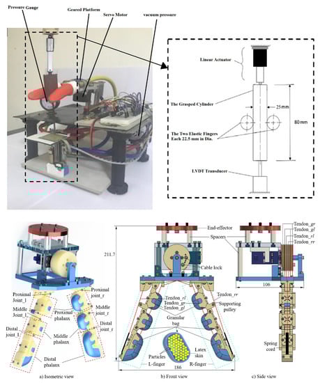 - Sompur, V.; Thondiyath, A.; SKM, V. Design and Development of a Bio-Inspired Novel 3-Fingered Gripper Platform. In Proceedings of the AIR2021: Advances in Robotics-5th International Conference of the Robotics Society, New York, NY, USA, 1 June 2022. [Google Scholar] [CrossRef]