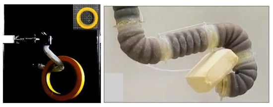 - Maghooa, F.; Stilli, A.; Noh, Y.; Althoefer, K.; Wurdemann, H.A. Tendon and pressure actuation for a bio-inspired manipulator based on an antagonistic principle. In Proceedings of the 2015 IEEE International Conference on Robotics and Automation (ICRA), Seattle, WA, USA, 26–30 May 2015; pp. 2556–2561. [Google Scholar]
