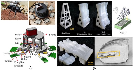 - Zi, P.; Xu, K.; Tian, Y.; Ding, X. A mechanical adhesive gripper inspired by beetle claw for a rock climbing robot. Mech. Mach. Theory 2023, 181, 105168. [Google Scholar] [CrossRef]
