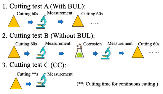 | Cutting time [s] | 1, 10, 30, 60, 120, 180, 240, 300 |
