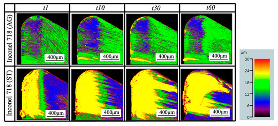 4.2. Comparison with the Results when dry Cutting Inconel 718(ST)