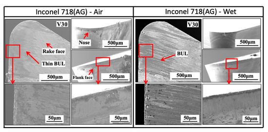 - Not only the BUL but also FBU has a protective effect on the tool, and the adhesive-induced wear may be the main wear mechanism of flank wear with the FBU formation. These provide new insights into the wear mechanism in dry cutting of Inconel 718.