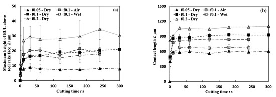 - The height and contact length of the BUL decrease as the cutting speed increases, and increase as the feed rate or cutting depth increases. A larger cutting-edge radius can reduce the height of the BUL without affecting its length. The air cutting atmosphere tends to increase the height and length of the BUL, while the wet cutting atmosphere tends to decrease them. These relationships between the size of the BUL and cutting conditions can be used to develop an effective BUL control system.