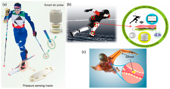 The efficacy of flexible wearable devices in the timely detection of exercise-induced fatigue is well documented. By analyzing a spectrum of physiological metrics, these devices provide a nuanced understanding of an athlete’s physical condition, enabling tailored adjustments to exercise regimens. This proactive approach not only mitigates the risk of overtraining but also significantly reduces injury susceptibility [84,85]. As a notable advancement, Sultan and Abbosh (2022) introduced a wearable dual-polarized electromagnetic system tailored for knee imaging [86]. This innovative system holds the promise of continuous monitoring of knee health, allowing for early detection and intervention of potential injuries, thereby minimizing the risk of injury aggravation. Lu (2021) innovatively incorporated nanogenerator sensors into the equipment of skiers [87]. These sensors produced distinct motion-induced voltage signals corresponding to varied movement states, enabling a granular analysis of parameters like skating angle and technique. Such insights have the potential to significantly enhance training methodologies and overall athletic performance [87,88].