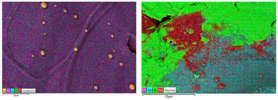Figure 12 shows the variation in phase composition, exhibiting a Bi-rich phase with different morphologies depending on the Bi concentration.
