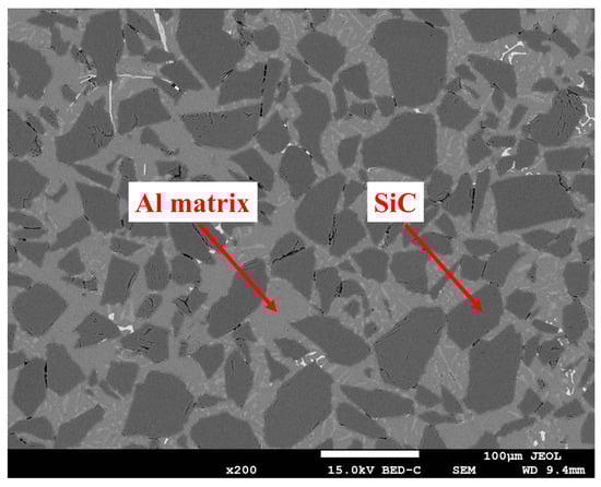 The SiCp/Al composite materials exhibits different material properties due to the difference in SiC particle volume fraction. The specific performance parameters are shown in Table 1. The microstructure (55% volume fraction) of the materials obtained from the experiment is shown in Figure 1 [,,,]. Due to the hard brittleness of SiC particles, machining this material is challenging. Therefore, numerous scholars have researched it to improve its machinability. Based on the database organization, the distribution of different SiC volume fractions and processing methods is shown in Figure 2a and Figure 2b, respectively. It was found that the relevant research mainly focuses on low-volume-fraction SiCp/Al composite materials and conventional processing methods (turning, milling, grinding, drilling). Moreover, the performance parameters of SiCp/Al composite materials vary greatly with different volume fractions, further complicating the processing. To address this, this review examines both conventional and unconventional processing studies to assess the current status and shortcomings of SiCp/Al processing, achieving efficient and high-quality processing of SiCp/Al.