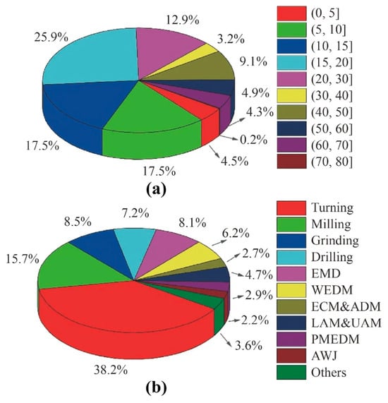 (a) Percentage of studied SiC fractions and (b) distribution of machining methods [].
