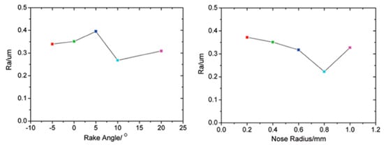 Variation of surface roughness with tool rake angle and tool nose radius. [Reproduced with permission from Dong et al.; published by Taylor & Francis, 2013] [].