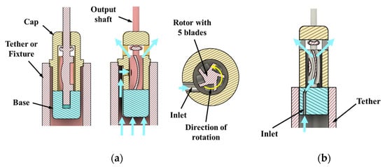 Figure 1). The design had an output shaft of 1 mm to which a cutter can be attached. The rotor blades were 500 µm wide and 5 mm in length. The output shaft was integrated with the rotor blades and a seal. The motor prototype can be operated by both water and air, and these working fluids are biocompatible and readily available in operating rooms.