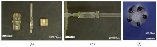 42] was successfully used to prototype preliminary to-scale 2 mm OD hydraulic micromotor designs and will be used for final device prototyping in the future. Another way to increase the component accuracy is to utilize supportless printing, thereby eliminating the introduction of imperfections during post-processing. The results of the 2 mm prototype are beyond the scope of this paper.