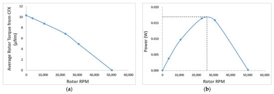 Figure 20a shows torque (µNm) vs. angular velocity (RPM). The stall torque was predicted to be 10.3 µNm. The zero-torque case is an ideal case where there is no internal resistance, i.e., friction is zero, and there is no load on the device.