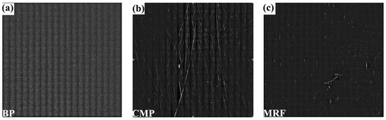 We selected samples after the bonnet-polishing, CMP, and MRF polishing processes, and performed dry etching and wet etching for each process to treat the samples. The results of the scattering test are presented in Figure 5. Regardless of the polishing process used, a large number of point features were observed on the surface of the samples after each cleaning, with a significant increase in the number of scratches and pockmarks, and an increase in roughness. These point defects may be caused by impurities in the polished redeposition layer of the samples [48]. The number of scattered points on the surface of the samples after wet etching was smaller than that of the samples after dry etching. The results demonstrate that both dry etching and wet etching techniques can effectively remove defects on the surface of the optical element and expose defects embedded in the subsurface. It was also shown that the laser-induced scattering imaging technique can be effective in the non-destructive detection of single-crystal silicon surface defects.