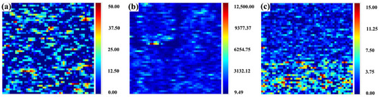 Figure 4 presents the photothermal weak absorption test results of samples with different polishing processes. The photothermal weak absorption technique enables the detection of subsurface defects of optical elements. As shown in Figure 4, the distribution of subsurface defects of bonnet-polished samples is more extensive and covers a larger area. This distribution is mainly due to the bonnet-polishing process, which uses flexible bonnets and abrasive materials to smooth out scratches or defects on the surface of the optical element [45,46]. However, craters and deep scratches cannot be removed, resulting in a large area of weak absorption test results. This also explains the reason for the high number of pockmarks in the scattering test [47]. CMP polishing involves the addition of abrasive materials in the chemical solution to polish the optical element. However, the polishing solution contains elements such as cerium, which introduces metal elements and results in very highly weak absorption values. The MRF polished samples have fewer subsurface defects compared to the previous two processes, and their distribution range is smaller than that of the bonnet-polished samples. Table 4 provides the specific values of weak absorption for these three polishing processes.