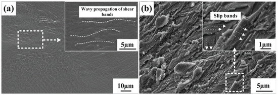 - The wavy propagation of abundant deformation bands and multiple steps on the fracture surface can cause ductile deformation. Furthermore, the formation of a large number of slip bands plays an important role in plasticity during deformation.