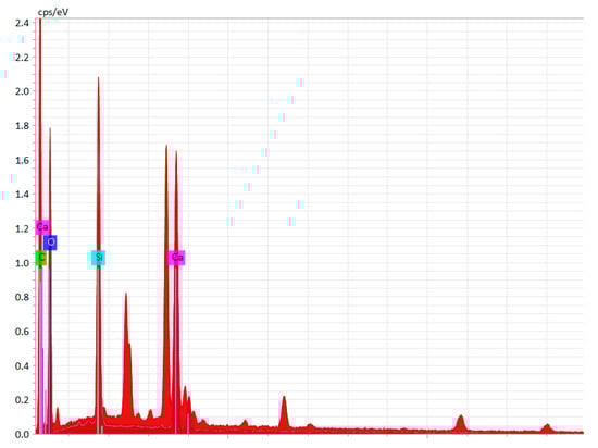 Energy-dispersive X-ray spectroscopy (EDS) spectra of a ball made of the terracotta ceramic–polymer composite material.