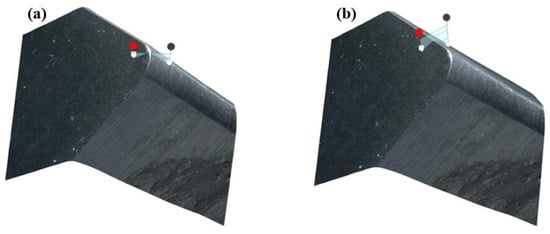 The edge sharpness of the inserts after CMSP can be characterized by the cutting edge radius. Specifically, the cross-section intersection interception function in the VHX-2000 ultra-depth of field microscope system (KEYENCE, Tokyo, Japan) is used to construct a surface perpendicular to the edge, as shown in Figure 3. Then, the edge radius of the insert is obtained by sequentially selecting more than 30 points of the arc of the edge for the least squares fitting and calculation based on Matlab 2022. Taking the insert edge radius as the evaluation index, the edge preparation parameters are optimized by the Taguchi method. The effect of the polishing plate’s rotational speed, swing angle, and input frequency of the controller on the edge preparation process are investigated by using ANOVA. The cutting edge morphology before and after preparation is observed by the VHX-2000 ultra-depth of field microscope and SEM.