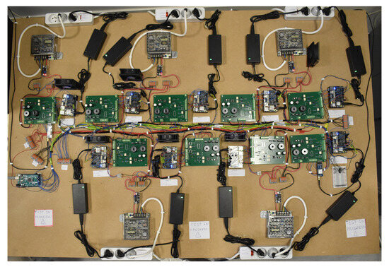 Picture of the test bench for ageing and measuring the degradation of nine FPGAs.