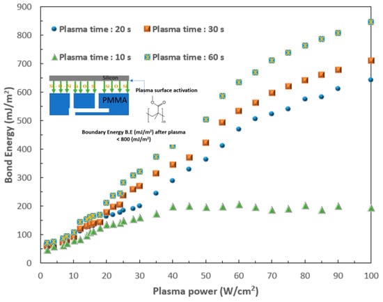 Curve showing the trend of the plasma power and bonding energy for the 3D SMCD.