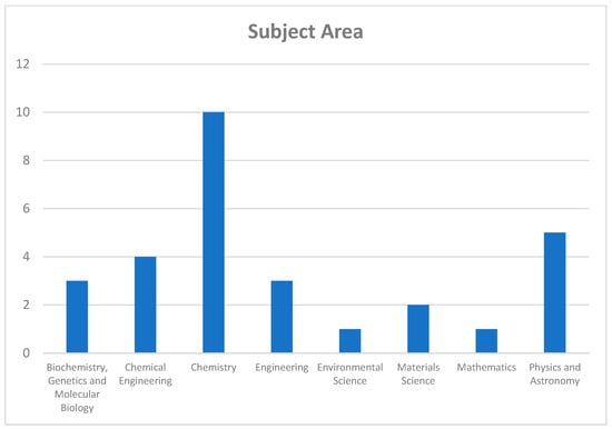 Figure 2. This figure depicts the breakdown of relevant articles published between 2018 and 2023 concerning controlled agglomeration, categorized by their respective subject areas. As shown, the field of Chemistry dominates the distribution with the highest number of articles published, followed by Physics and Astronomy. This suggests a significant focus on the application of controlled agglomeration within the realm of chemical research.