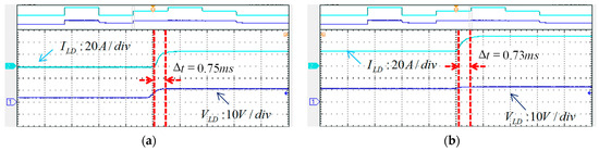 For comparison purposes, the LD’s output current commands for the experimental test are the same as those in the simulation scenario. Figure 25 and Figure 26 show the measured waveforms. The results show good similarity to the simulation results, and thus the hardware design and the proposed control scheme are proven feasible and effective.