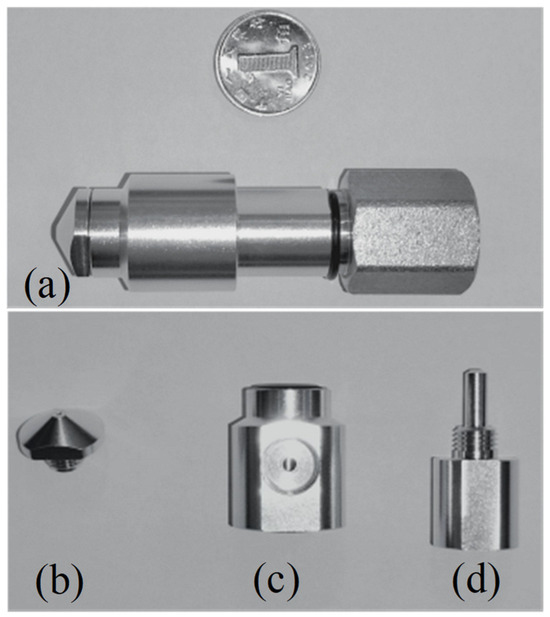 The negative-pressure nozzle, referred to as (a) the nozzle mechanism, is composed of three parts, namely (b) nozzle, (c) backpressure chamber, and (d) throttling nozzle, which maintain fine air tightness and facilitate processing.