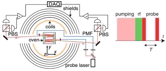- Shah, V.; Romalis, M.V. Spin-exchange relaxation-free magnetometry using elliptically polarized light. Phys. Rev. A 2009, 80, 13416. [Google Scholar] [CrossRef]