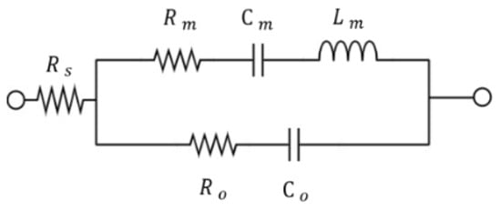 where and are the series and parallel resonance frequencies, respectively, of the mBVD model in Figure 3.