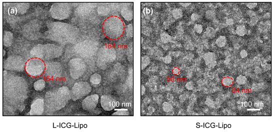 TEM images of (a) L-ICG-Lipo and (b) S-ICG-Lipo.