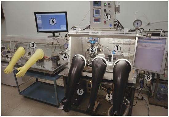 Note that using refurbished components reduces costs. For example, a used RF plasma generator could cost about USD 1500 on eBay. Similarly, a pre-owned glovebox is significantly more affordable than a new one, etc. Instead of a motorized one, one can use a manual home-made transfer machine, that costs about USD 1000–1500 [,,]. This is less convenient because the manual operations are hindered in the glove box, but it is still acceptable. The same is true for the vacuum part.