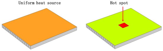 Figure 1 shows two power distributions of the chip; the left side of Figure 1 shows uniform distribution of the heat source and the right side of Figure 1 shows the non-uniform distribution of the heat source.