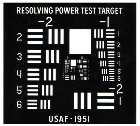 - Available online: https://en.wikipedia.org/wiki/1951_USAF_resolution_test_chart (accessed on 1 June 2024).