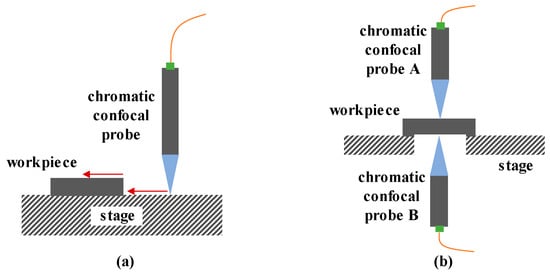 The methods used to measure the thickness of an opaque workpiece. (a) Single probe and (b) dual probes.