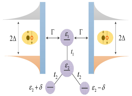 - Glodzik, S.; Wojcik, K.P.; Weymann, I.; Domanski, T. Interplay between electron pairing and Dicke effect in triple quantum dot structures. Phys. Rev. B 2017, 95, 125419. [Google Scholar] [CrossRef]