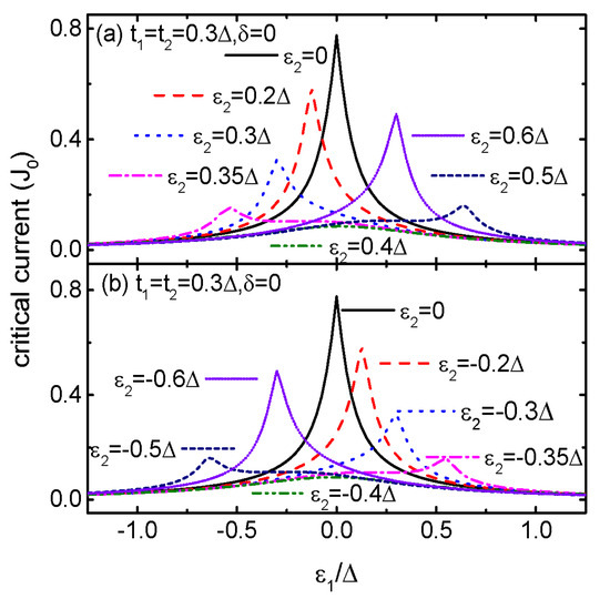 - Sun, Q.F.; Wang, J.; Lin, T.H. Control of the supercurrent in a mesoscopic four-terminal Josephson junction. Phys. Rev. B 2000, 62, 648. [Google Scholar] [CrossRef]