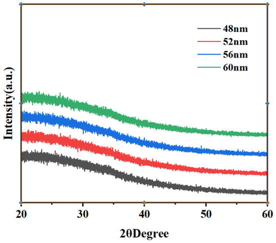 XRD analysis of thicknesses of 48, 52, 56, and 60 nm.