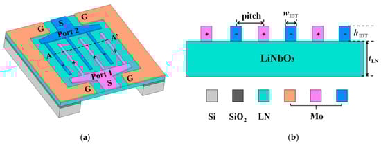 - Kadota, M.; Ogami, T. High frequency lamb wave resonator using LiNbO3 crystal thin plate and application to tunable filter. In Proceedings of the 2010 IEEE International Ultrasonics Symposium, San Diego, CA, USA, 11–14 October 2010. [Google Scholar] [CrossRef]