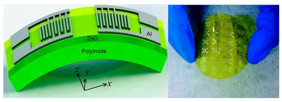- Tao, R.; Wang, W.B.; Luo, J.T.; Hasan, S.A.; Torun, H.; Canyelles-Pericas, P.; Zhou, J.; Xuan, W.P.; Cooke, M.D.; Gibson, D.; et al. Thin film flexible/bendable acoustic wave devices: Evolution, hybridization and decoupling of multiple acoustic wave modes. Surf. Coat. Tech. 2019, 357, 587–594. [Google Scholar] [CrossRef]