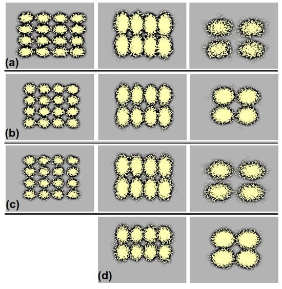 In the demonstration, the corresponding constellations of VLC OFDM-QAM signal under 4- to 16-QAM are also exhibited in Figure 4a–d after 1 to 4 m wireless VLC link lengths, respectively. The constellation measured is based on the obtained SNR of the corresponding OFDM signal after passing through different wireless link length. Figure 4a–d presents the observed constellation distributions of OFDM signals are clear after even after a 4 m length of VLC connection.