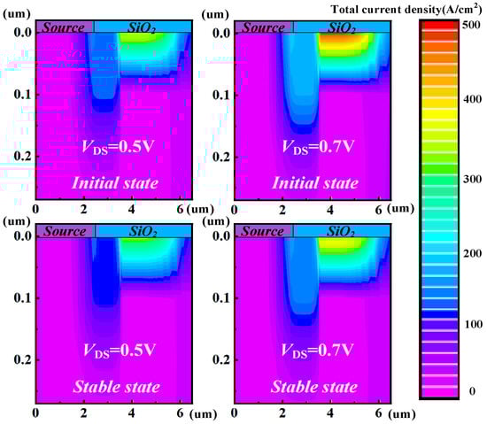 - Sarkar, T.; Challa, A.; Huang, K.; Venkatraman, P.; Probst, D. Application-driven device/circuit co-simulation framework for power MOSFET design and technology development. In Proceedings of the 2018 IEEE 30th International Symposium on Power Semiconductor Devices and ICs (ISPSD), Chicago, IL, USA, 13–17 May 2018; pp. 288–291. [Google Scholar] [CrossRef]