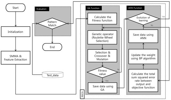 In the meantime, some attempts have been devoted to the data preprocessing before network training. For example, Kim et al. propose an identification module in Figure 13 []. They preprocess the signal with the smoothed moving average (SMMA) to facilitate data smoothing, noise elimination, and filtering. Then, GA adopts the data with high fitness from the received ones, and the generated gradient is passed to the BPNN for odor detection. The developed recognition module can extract patterns with greater reliability and then realize a high success rate in detecting several gases. Moreover, the fuzzy neural network has proved to be a powerful tool in identifying the MUT through high-noise data []. The accurate MUT identification offers a dependable benchmark for devising the operational strategies of environmental monitoring nodes, enabling the timely optimization of data acquisition precision and transmission volume for better energy efficiency []. These works will be of meaningful assistance to IoT-compatible device technologies.