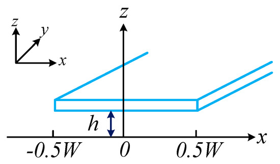 In extremely low-pressure environments (<1 Pa), collisions between gas molecules become infrequent, making it challenging to treat the gas as a viscous fluid. In such cases, the concept of effective viscosity may no longer apply. An energy transfer model, which describes the interactions between gas molecules and the vibrating plate during collisions, could provide a more accurate representation. To simplify the analysis of the MEMS cobweb-like disk resonant gyroscope, its structure is approximated as a rectangular plate, as illustrated in Figure 5.
