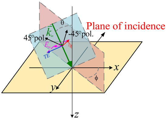 where , , and represent the complex amplitudes of three electric field components of the incident wave, respectively, and the corresponding wave vectors are , , and .