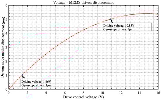 Figure 7. Relationship between driving voltage and MEMS gyroscope driving displacement.