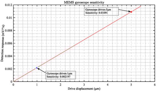 Figure 8. Relationship between driving displacement and gyroscope detection sensitivity.