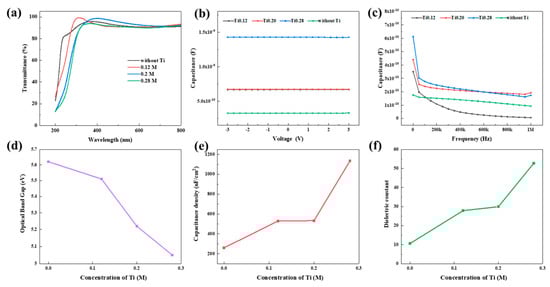 - Yang, Y.; Xu, Z.; Qiu, T.; Ning, H.; Zhong, J.; Li, M.; Luo, D.; Liu, X.; Yao, R.; Peng, J. High k PVP titanium dioxide composite dielectric with low leakage current for thin film transistor. Org. Electron. 2022, 101, 106413. [Google Scholar] [CrossRef]