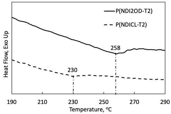 DSC thermograms for P(NDI2OD-T2) and P(NDICL-T2).